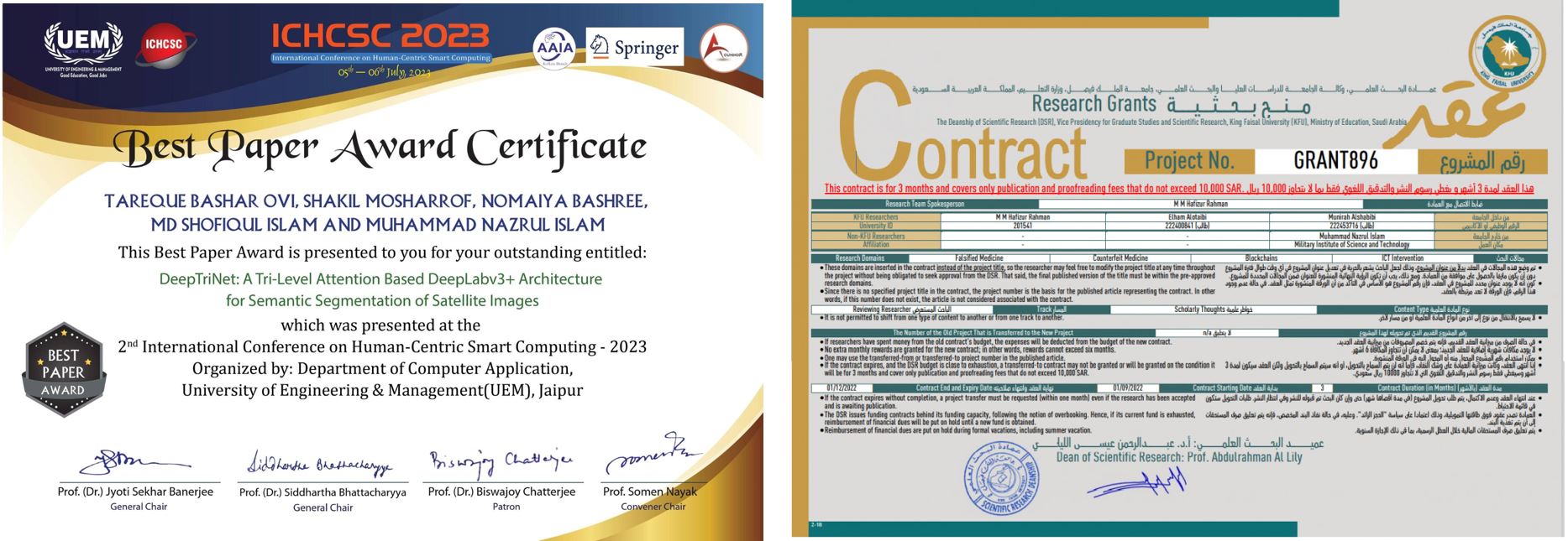 Lt Col Muhammad Nazrul Islam, Ph.D., Sigs of CSE Department received a very encouraging International Collaborative Research Grant (Grant No. 896) amounting to 10,000 SAR from King Faisal University (KFU), Ministry of Education, Saudi Arabia to pursue collaborative research and publications. Lt Col... Read More