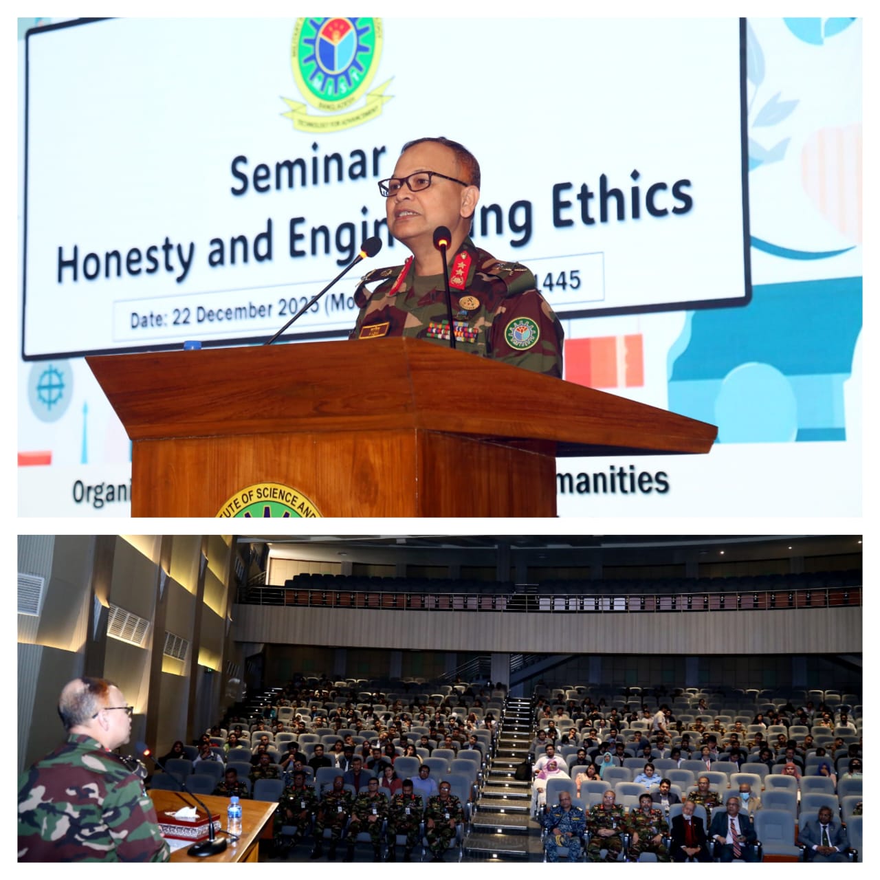 The Military Institute of Science and Technology (MIST) hosted a seminar titled “Honesty and Engineering Ethics” on 22 December 2025, organized by the Department of Science and Humanities (MIST). The seminar was graced by Major General Md Nasim Parvez, BSP, ndc, afwc, psc, Commandant of MIST, as the Chief Guest, who spoke with an inspiring address on leadership and integrity for future engineers.