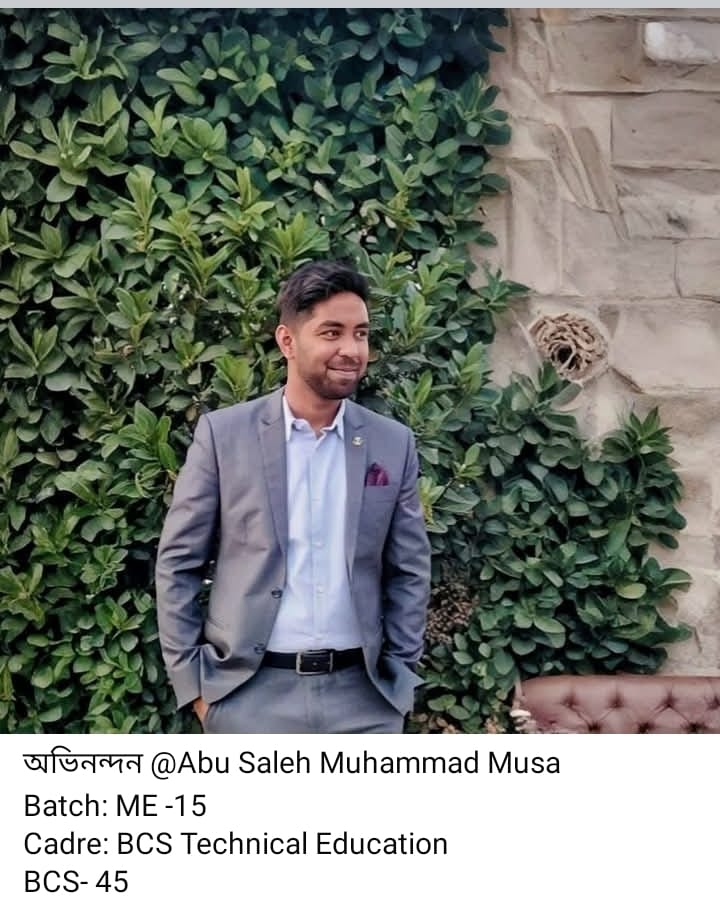 Ahmed Imrul Kayes from Batch EECE-15 has qualified in the BCS Administration cadre and is currently serving as an Instructor at Mymensingh Polytechnic Institute. Asaduzzaman Nur from Batch EWCE-03 has been selected for the BCS Ansar cadre. Abir Mahbub Titom from Batch IPE-02 and Asif Ahmed Abeer from Batch CE-19 have both qualified for the BCS Customs and Excise cadre.
